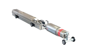 YG-100 系列X射線管道爬行器是我公司研發(fā)的具有自主知識產權的長距離管道檢測設備。設備采用優(yōu)質不銹鋼外殼,優(yōu)異的曝光控制電路設計,升壓和斬波電路采用IGBT功率模塊,供電效率更高,西門子PLC程序控制,性能更加穩(wěn)定。輸入數據采用觸摸屏人機對話方式(或APP遠程操作),使用更便捷。采用磁信號定位控制,定位精度可達±3mm。具有優(yōu)秀的自檢保護功能、標準的X射線發(fā)生器(機頭),適設備的通用性更強,恒功率輸出(不受電池電壓波動影響)、圖像黑度均勻。四輪驅動,爬坡能力強。車身尺寸小,轉彎方便。